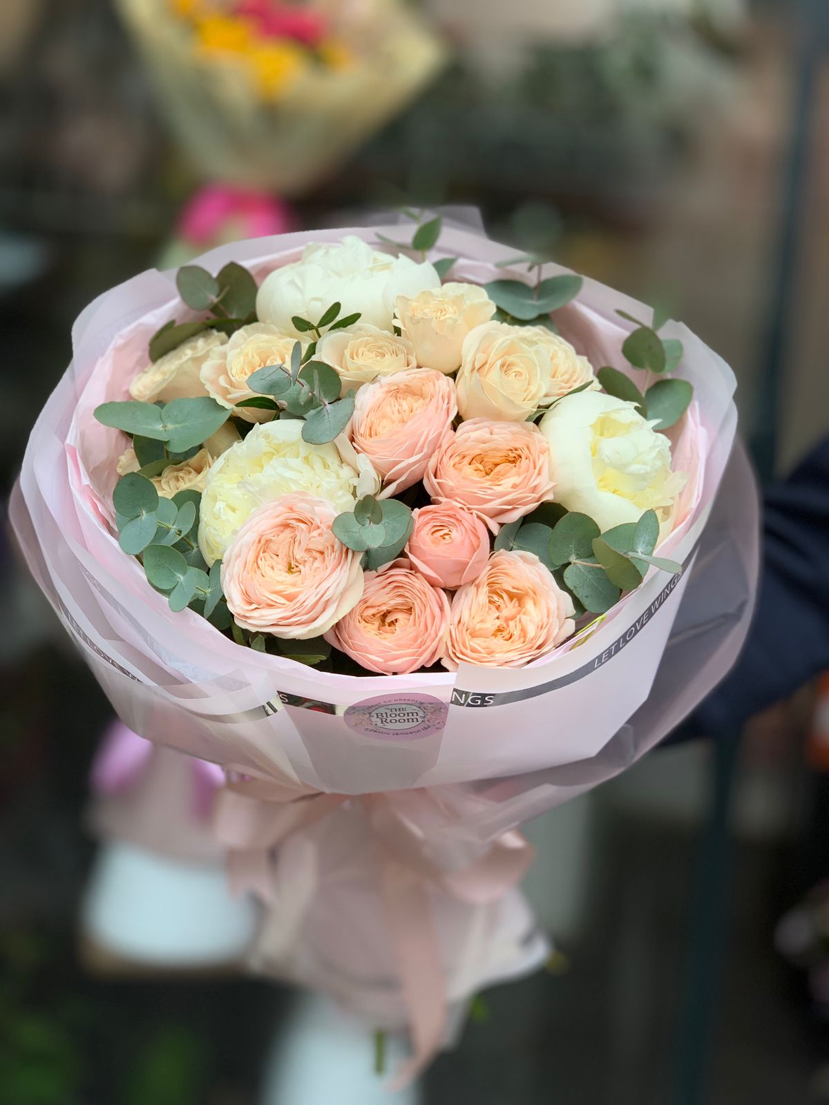 Designerii florali The Bloom Room au combinat cele mai nobile flori pentru a crea un buchet elegant plin de prospețime și rafinament. Compoziția include: