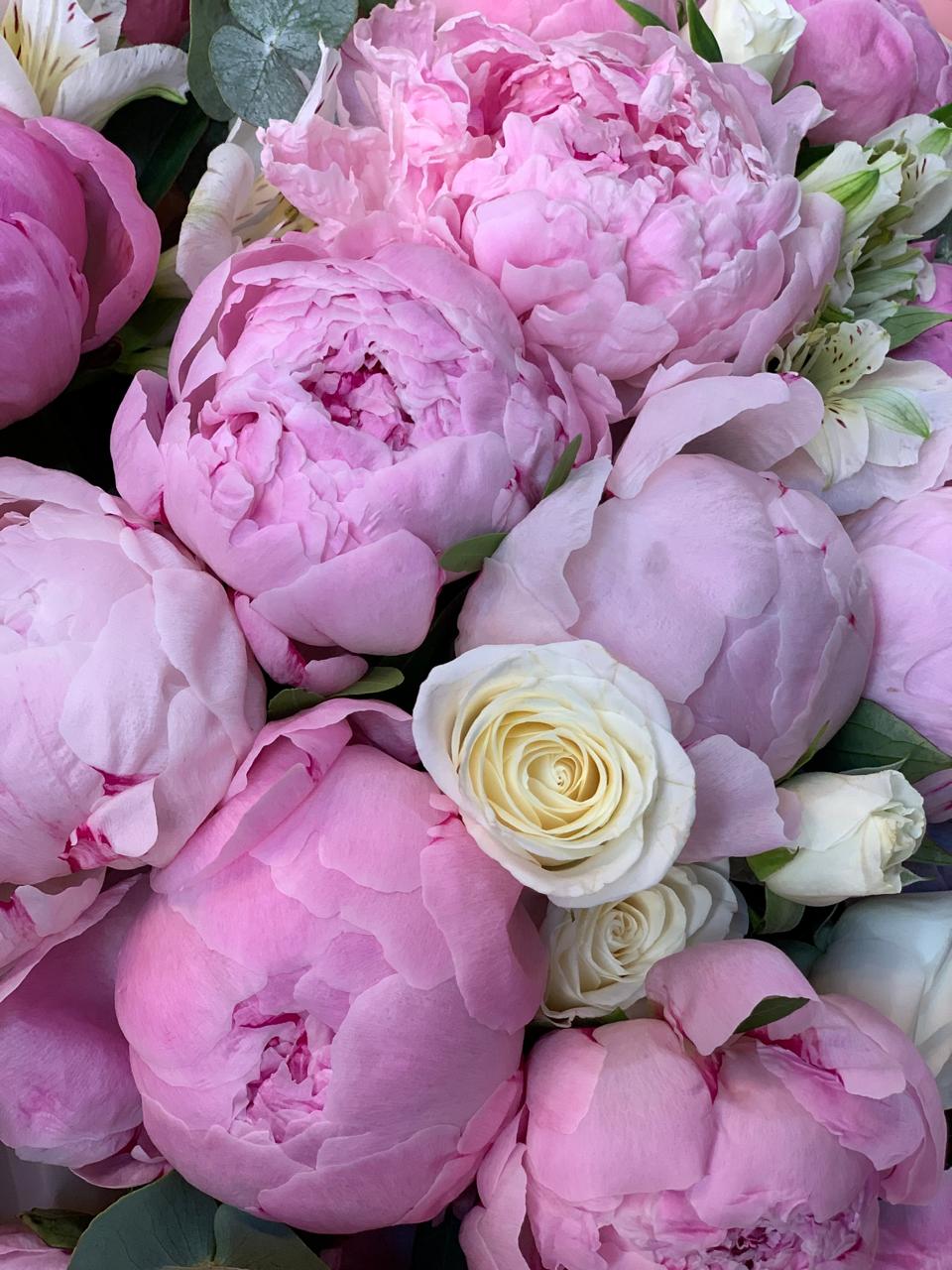 Buchet Premium cu Bujori Roz Trandafiri albi
