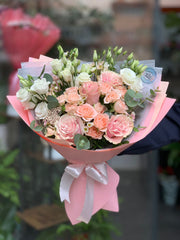 Buchet Mixt Roz cu Trandafiri si Eustoma