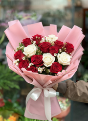Buchet 15 Trandafiri Rosii și Albi Mix